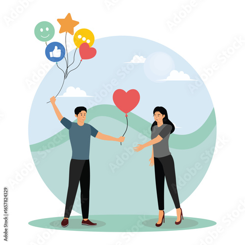 couple, interact, interaction, smileys, balloon, love, joy, outdoors, connection, human relationships, affection, expression, communication, happy, happiness, nubes, sentiment, bright, positive, friendly, together, bond, man, female, woman, romance, creative, balloon, conversation, shared, supportive, fun, casual attire, simple, client, feedback, satisfaction, service, user, star, marketing, smile, award, support, online, application, client, discussion