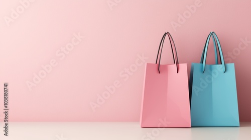 Customer Journey Concept with Shopping Bags Against Pink Background Representing Retail Experience and Consumer Behavior