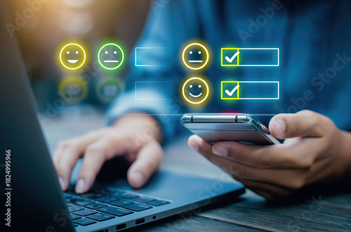 feedback, satisfaction, survey, review, rating, client, service, quality, evaluation, life events, opinion, smartphone, laptop, business, happy, response, assessment, communication, digital, technology, professional, interface, smiley, checklist, mobile, device, computing, online, management, marketing, positive, engagement, improvement, performance, testimonial, corporate, strategy, monitoring, success, interactive, user, client, consumer