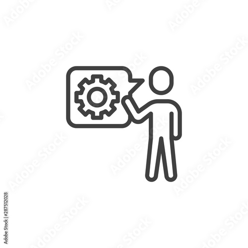 Customer service line icon. Technical support linear style sign for mobile concept and web design. Man and speech bubble with gear outline vector icon. Symbol, logo illustration. Vector graphics