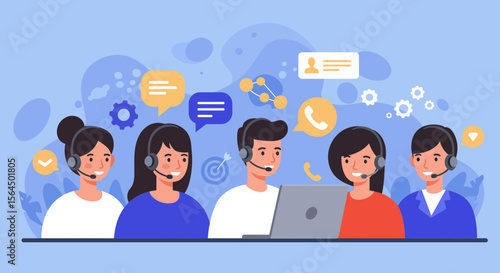 call, center, agent, support, client, service, headset, communication, online, help, desk, operator, assistant, phone, adviser, representative, adviser, telemarketing, job, occupation, profession, men at work, employee, cartoon, vector, illustration, flat, design, business, office, technology, laptop, people, male, female, background, graphic, contact, teamwork, virtual, connection, network, social, media