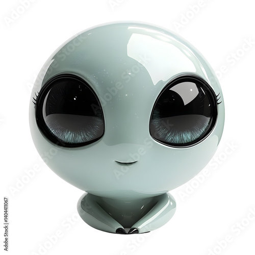 three-dimensional, illustration, alien, cute, character, design, artwork, digital artwork, fantasy, creature, space, adorable, big eye, small, happy, smiling, friendly, whimsical, playful, innocent, soft, pastel, green, grey, glossy, shiny, render, model, computer graphic, art, image, graphic, visual, digital illustration, realistic, stylised, cartoon, animation
