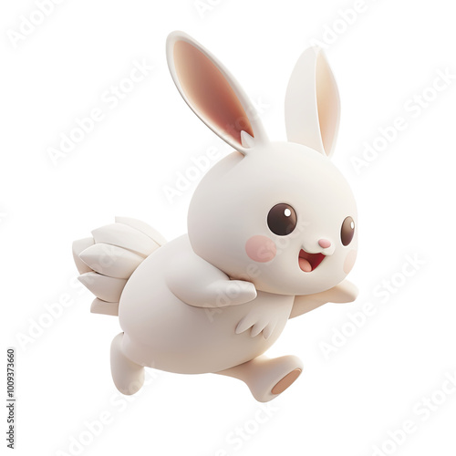 Cute 3D white rabbit running bunny cartoon animal character mascot isolated render PNG transparent background easter holiday pet design element furry mammal adorable whiskers happy hopping jump