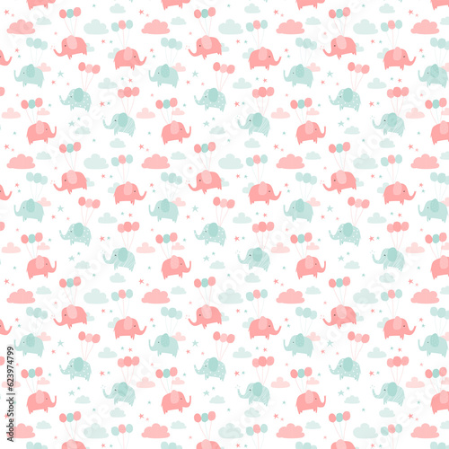 Cute adorable elephant cartoon doodle pastel seamless pattern