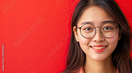 Cute and attractive Asian person with a cheerful expression, background with ample space for text or promotional use
