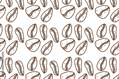 Cute and minimalist Coffee bean seamless pattern. Coffee doodle for packaging or wallpaper.