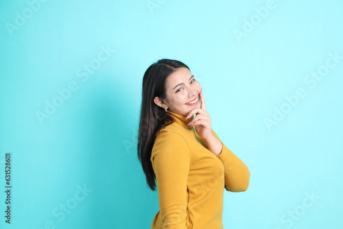 person, female, woman, portrait, young, adult, asian, attractive, beautiful, isolated, pretty, studio, casual attire, fashion, oversize, pink, colours, thai, green, indian, yellow, cheerful, smile, happy, standing, cute, lifestyle, confident, positive