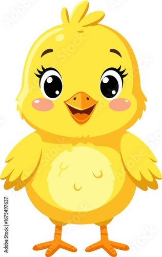 Cute Baby Chick Cartoon Character Smiling Children Book Illustration