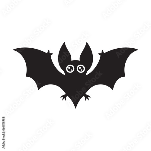 Cute Bat Silhouette with Big Eyes Isolated on White Background