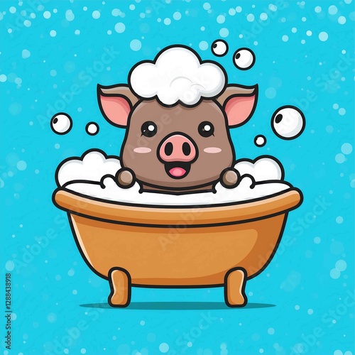 Cute boar taking bubble bath in bathtub