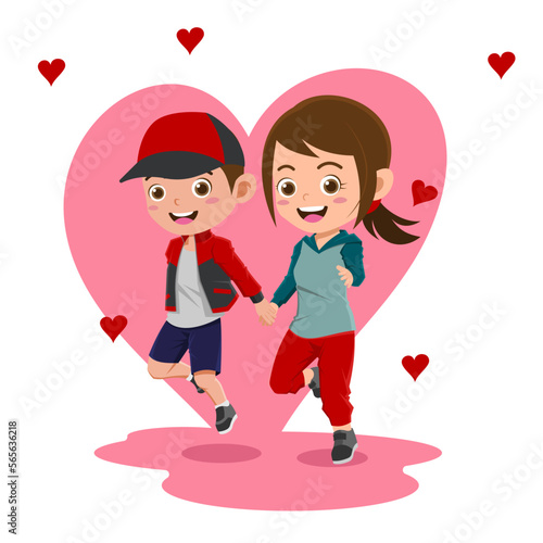 Cute Boy and Girl Celebrating Valentines Day, Background in Separate Layers for Easy Editing