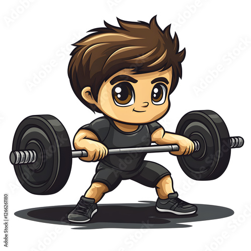 Cute Boy Weightlifting Cartoon Illustration