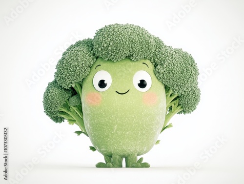 Cute broccoli character with a friendly expression, ideal for healthy eating themes, isolated on white background.