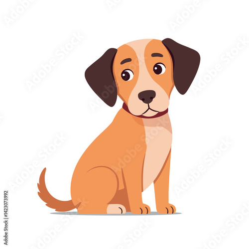 dog, puppy, pet, animal, brown, white, sitting, cute, young, canino, domestic, friendly, playful, mammal, companion, tail, ear, nose, eye, cartoon, vector, illustration, friendship, love, adorable, fur, paw, happy, indoor, loyal, simple, clean, design, cheerful
