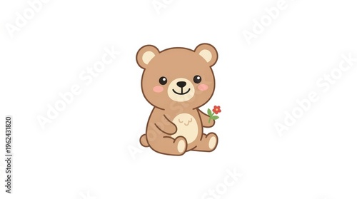 bear, cartoon, cute, brown, animal, teddy, funny, character, smiling, sitting, flower, pink, green, whimsical, illustration, drawing, fun, playful, childish, toy, friendly, smile, eye, nose, mouth, ear, head, body, leg, arm, claw, fur, soft, cuddly, adorable, lovable, charming, delightful, sweet, endearing, play, entertaining, whimsy, art, creative, design, digital