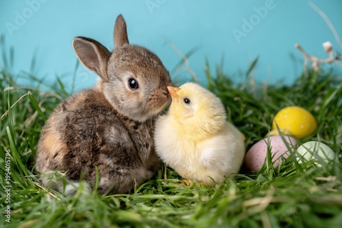 easter, rabbit, chick, rabbit, egg, spring, cute, animal, grass, pastel, holiday, adorable, baby, fluffy, meadow, colourful, festive, seasonal, blue, background, nature, young, mammal, bird, friendship, tender, charming, celebration, nest, peaceful, soft, countryside, family, portrait, fresh, gentle, rural, sweet, daylight, whimsy, hare, brown, fur, small, animal, ear, furry, farm