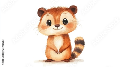 Cute cartoon animal illustration of a small, adorable, and friendly looking, standing, adorable, cute, small, furry, rodent-like creature with big eyes and a happy expression.