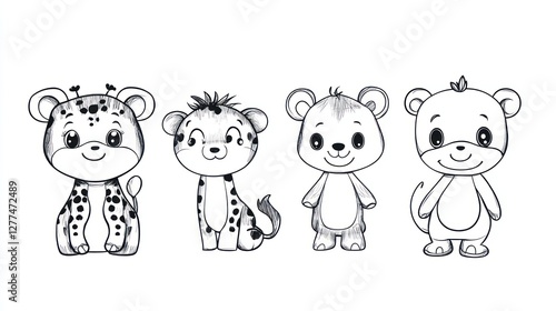 animal, cartoon, vignetting, drawing, illustration, cute, children, children, design, graphic, style, vector, wildlife, leopard, bear, baby animal, character, art, black, white, line, colouring, page, book, printable, digital, black-and-white
