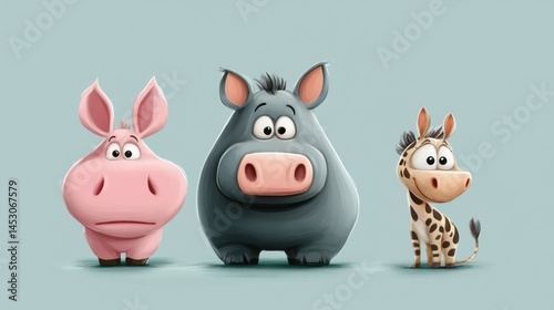 pig, giraffe, hippo, cartoon, animal, illustration, drawing, cute, adorable, funny, design, graphic, digital, art, character, creative, happy, playful, whimsical, colourful, children, children, animal, nature, wildlife, picture, sweet, baby pig, boar, poster