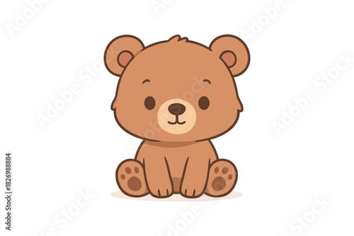 cartoon, cute, bear, sitting, animal, brown, adorable, isolated, children, illustration, character, design, fun, playful, friendly, expression, little, happy, furry, cuddly, paw, ear, face, drawing, toy, sweet, smile, innocent, charming, joyful, lovable, youth, soft, minimalist, decor, cheerful, simplicity