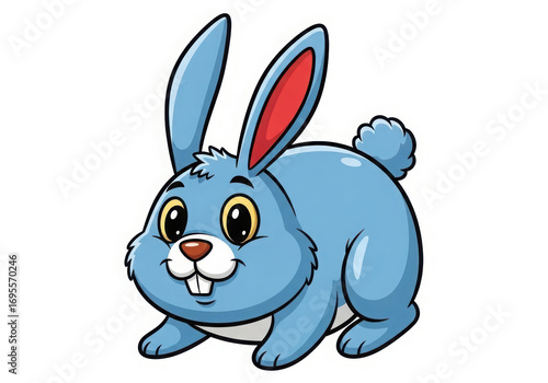 Cute cartoon blue bunny rabbit with big eyes and fluffy tail