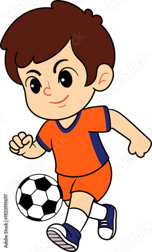 Cute Cartoon Boy Soccer Player Running in Netherlands Orange Jersey