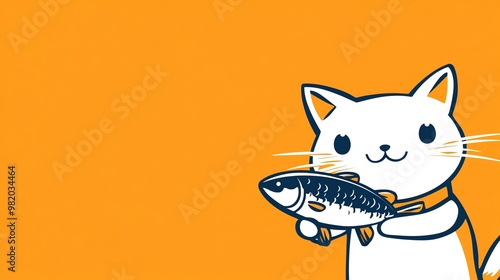 wallpaper, cat, cartoon, cute, animal, fish, pet, funny, illustration, graphic, design, happy, adorable, white, orange, seafood, mascot, character, vector, isolated, background, simple, minimal, food