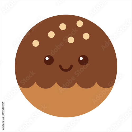 Cute Cartoon Chocolate Chip Bun Round chocolate covered bun with happy