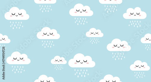 cloud, rain, raining, cloud, sky, blue skies, weather, cute, cartoon, illustration, drawing, art, design, pattern, background, wallpaper, digital artwork, adorable, sweet, happy, cheerful, playful, childish, fun, sky background, blue background, seamless pattern, fabric design, scrapbooking, greeting card, invitation, sticker