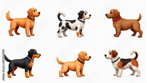 Cute Cartoon Dogs Illustration Featuring Various Breeds, Perfect for Pet-Themed Designs and Children's Projects