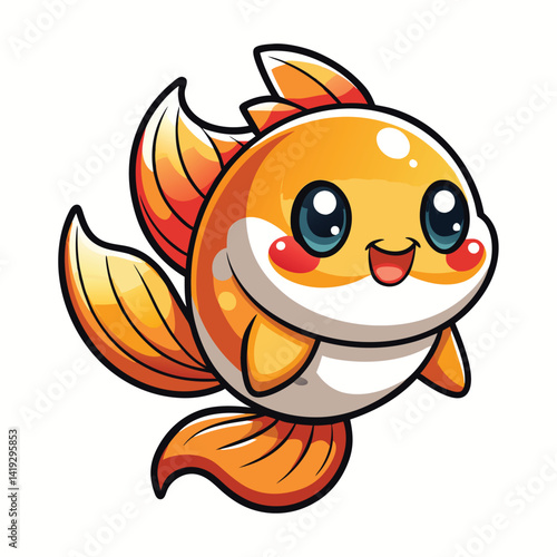 cartoon, fish, cute, happy, character, animation, illustration, graphic, orange, yellow, digital artwork, art, design, pet, animal, water, ocean, swimming, koi, goldfish, adorable, smiling, big eye, expression, friendly, children, children, animated, graphic design, drawing, vector, colours