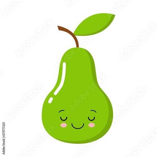 Cute cartoon green pear with kawaii face. Clipart, sticker, card, print, scrapbooking, for children products