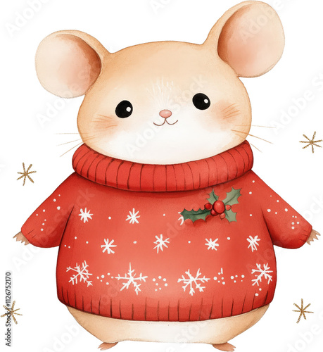mouse, cartoon, christmas, sweater, cute, holiday, festive, animal, character, red, winter, snowflake, adorable, cheerful, gift, joyful, fun, smiling, furry, seasonal, drawing, happy, playful, cosy, nature, small, pet, whimsical, spirit, expression, attire, clothing, merry