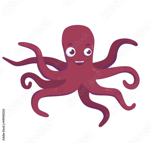 Cute cartoon octopus in burgundy color. Vector graphic.