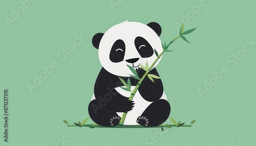 Cute cartoon panda bear eating bamboo against a green background. Adorable animal illustration perfect for kids and nature-themed content.