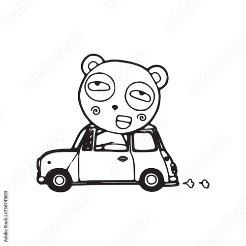 cute cartoon panda Hand drawn doodle comic illustration vector isolated on white background