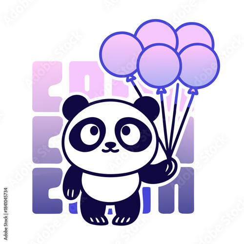 Cute cartoon panda holding pink and purple balloons