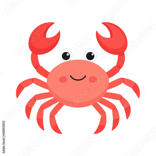 Cute cartoon red crab with smiling face and large claws, cartoon sea creature illustration perfect for children, marine life, and ocean themed designs