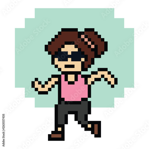 Cute cartoon run exercise pixel cartoon 8bit character woman lady run running jog cardio lifestyle decoration life style 8 bit female jog marathon exercise game 8 bit game vector.