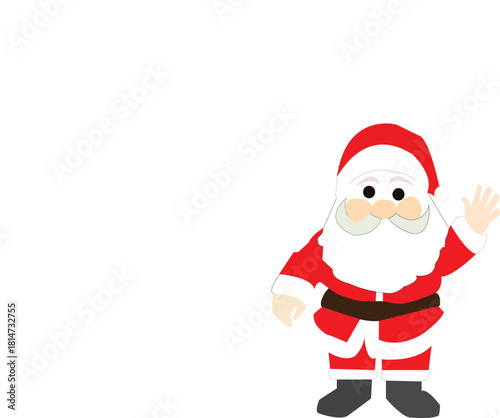 santa, claus, christmas, holiday, winter, character, man, male, person, figure, costume, suit, red, beard, moustache, hat, glove, boot, belt, happy, joy, celebration, season, greeting, wave, hand, cute, cartoon, drawing, graphic