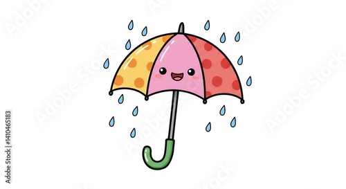 Cute cartoon umbrella in rain illustration