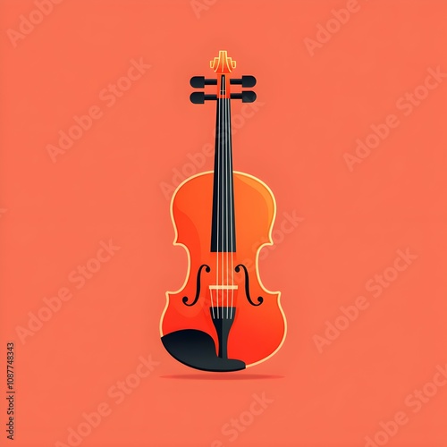 Cute cartoon violin, flat style illustration, simple details, simple background, vector graphics, symmetrical composition, flat design, bright colors, warm tones, cute shape, musical instrument icon,