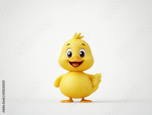 Cute cartoon yellow duckling standing cheerfully on a plain background, ideal for children's content