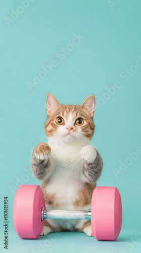 Cute Cat Lifting Pink Dumbbells Fitness Pet Workout