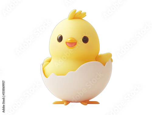chick, egg, yellow, cute, cartoon, spring, easter, happy, birth, hatching, newborn, small, adorable, character, three-dimensional, illustration, digital, pastel, bright, round, pointing, out, emerging, new, life, springtime, symbol, design, clip art, image, vector, isolated, animated, soft, positive