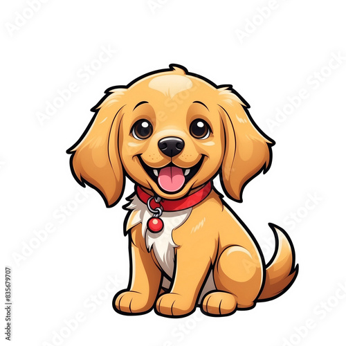 Cute Childish Kawaii Golden Retriever Dog Character Sticker with Big Smile, Shiny Golden Fur and Sparkling Eyes, Thick Black Outline, Generative AI.