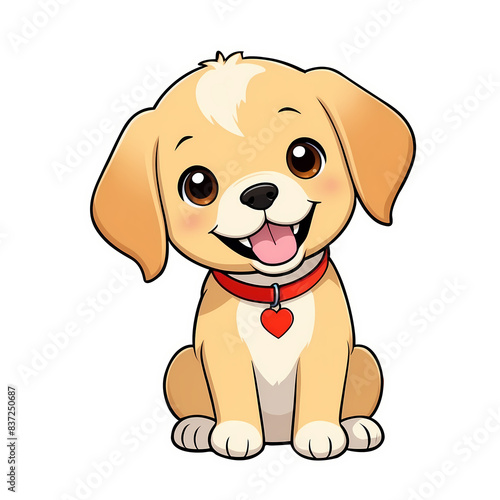 Cute Childish Kawaii Labrador Dog Character Sticker with Big Smile and Warm Golden Fur, Tongue Sticking Out and Big Round Eyes, Thick Black Outline, Generative AI.