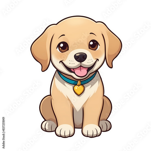 Cute Childish Kawaii Labrador Dog Character Sticker with Big Smile and Warm Golden Fur, Tongue Sticking Out and Big Round Eyes, Thick Black Outline, Generative AI.