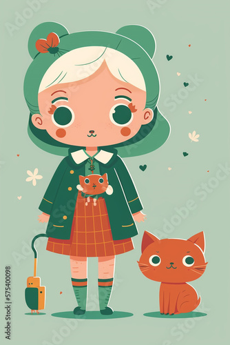 Cute children character and parents, grandparents, pet, family, cartoon, paint, for Children's Books - Generative AI