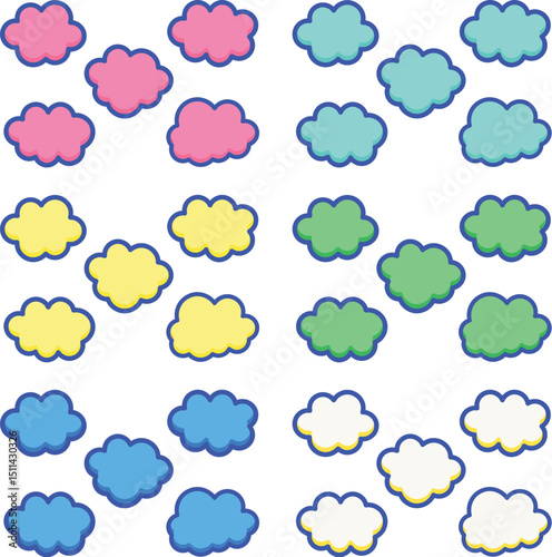 vector, frame, background, pattern, material, illustration, colourful, design, cute, copy space, cloud, fluffy, soft, harajuku, circle, fantasy, simple, fashion, children, dream, candy, sweet, candy floss, sweet, loose, pop, girlie, cotton, decoration, fancy, happy, cartoon, pastel, moist, bubble, thinks, comic, sky, cloudscape, seamless, wallpaper, shape, set, element, nature, weather, icon